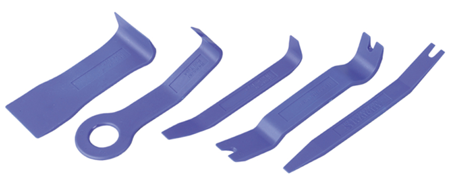 Set includes five different sizes and styles of tools that allow easy removal of trim fasteners, mouldings and wheel hubs. Features: Tools are made of plastic to prevent damage to trim, mouldings, alloy wheels or vehicle paint Can be used on trim fasteners and mouldings inside, or outside, the vehicle