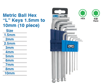 L-Type Wrench Set | extra-long | internal Hexagon / internal Hexagon with Ball Head 1.5 - 10 mm | 13 pcs.